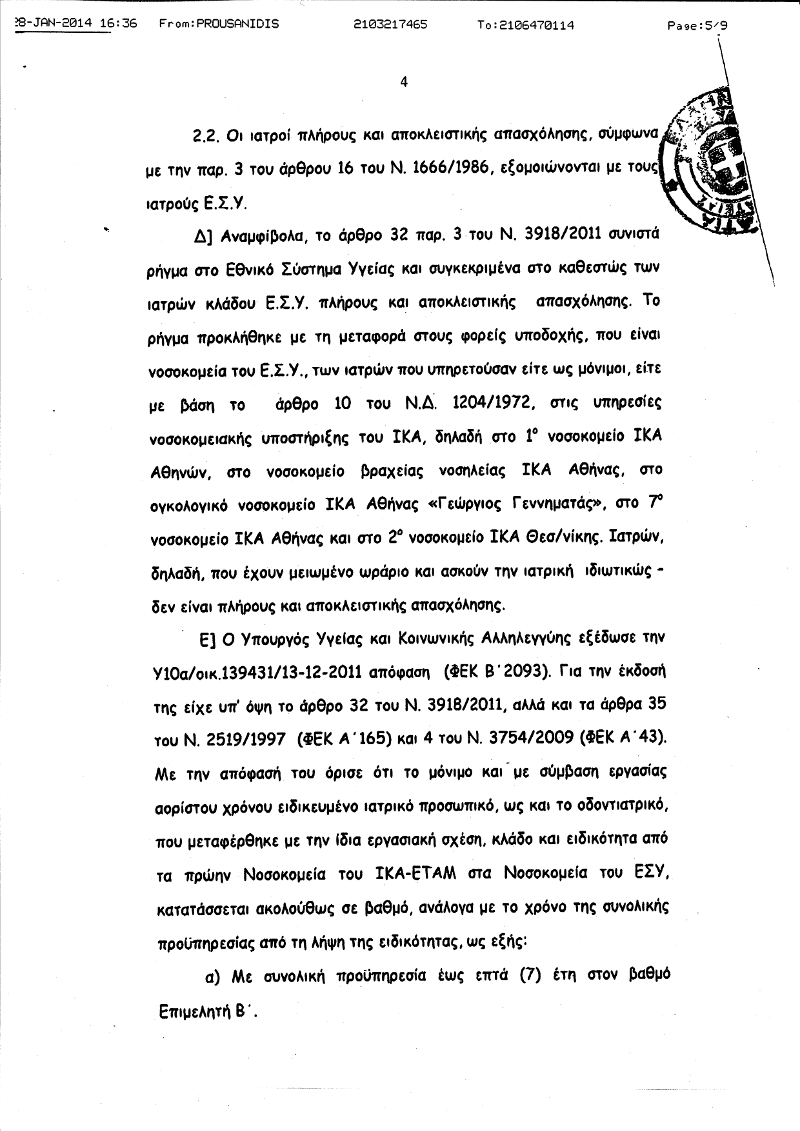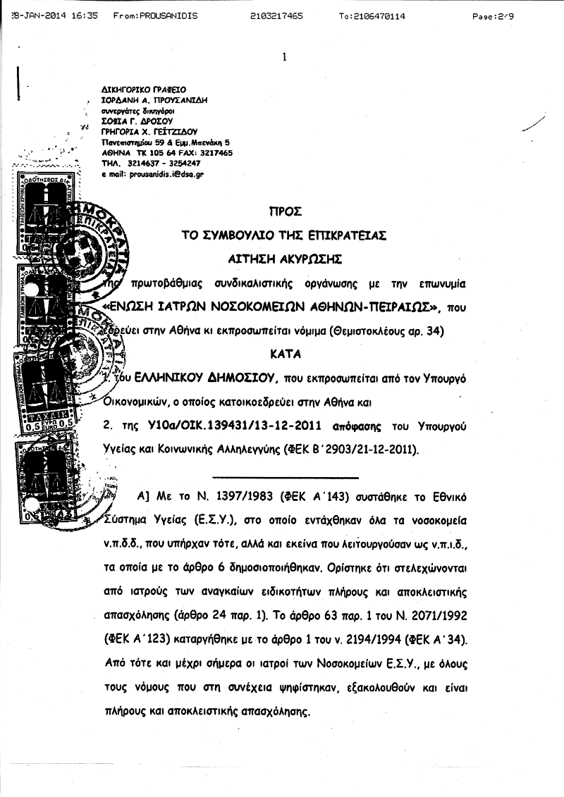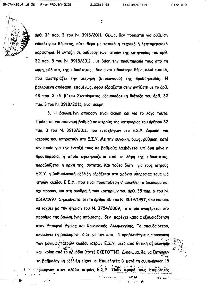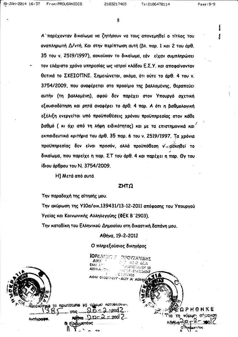 Προσφηγή στο ΣτΕ για την Ένταξη των Γιατρών των Πρώην ΙΚΑ 30-01-14