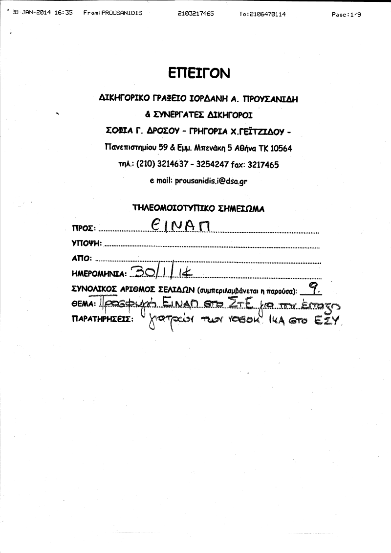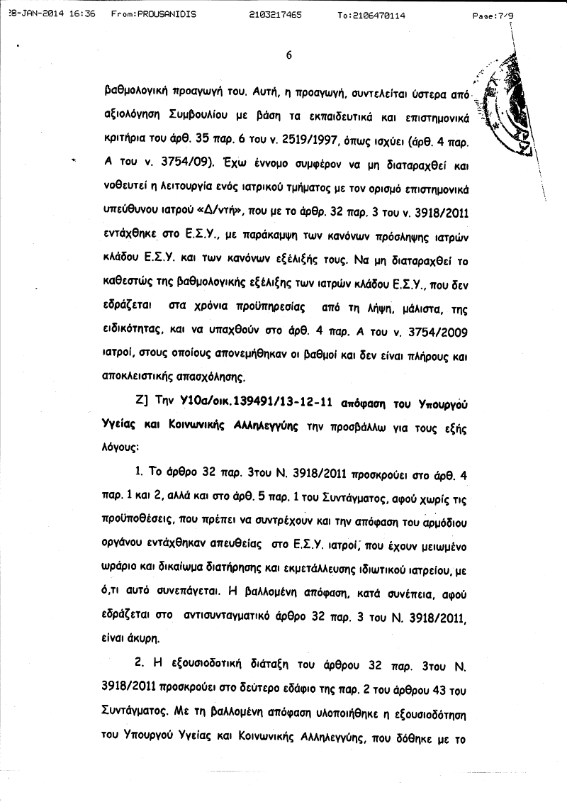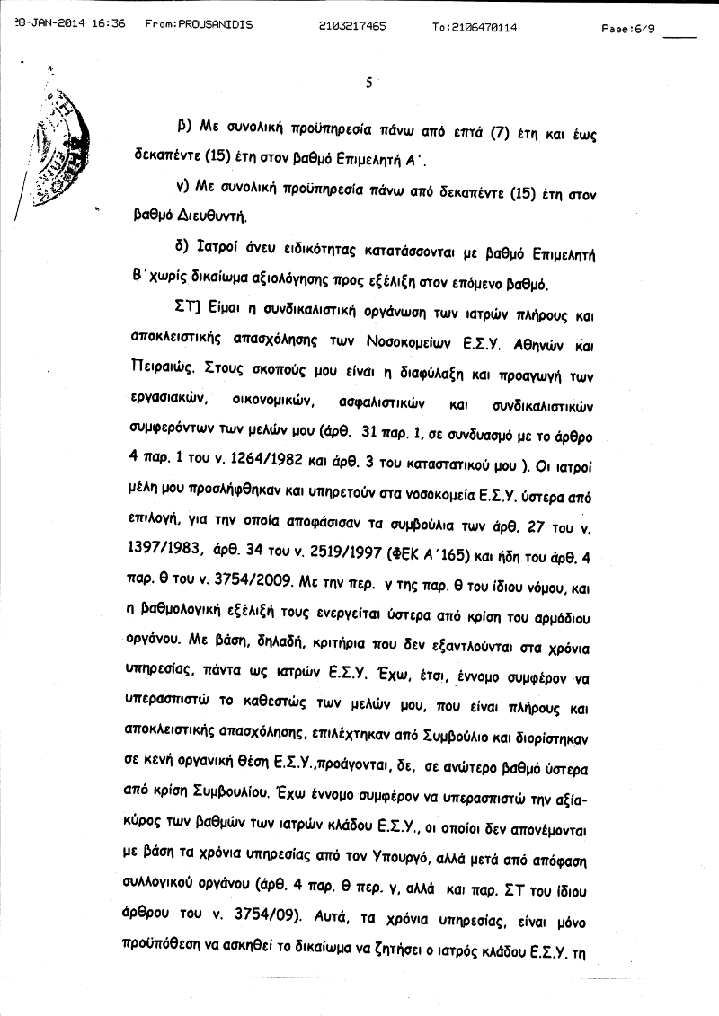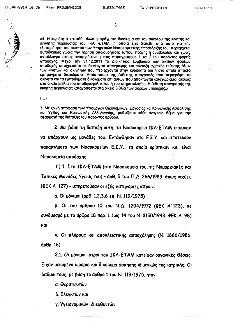 Προσφηγή στο ΣτΕ για την Ένταξη των Γιατρών των Πρώην ΙΚΑ 30-01-14